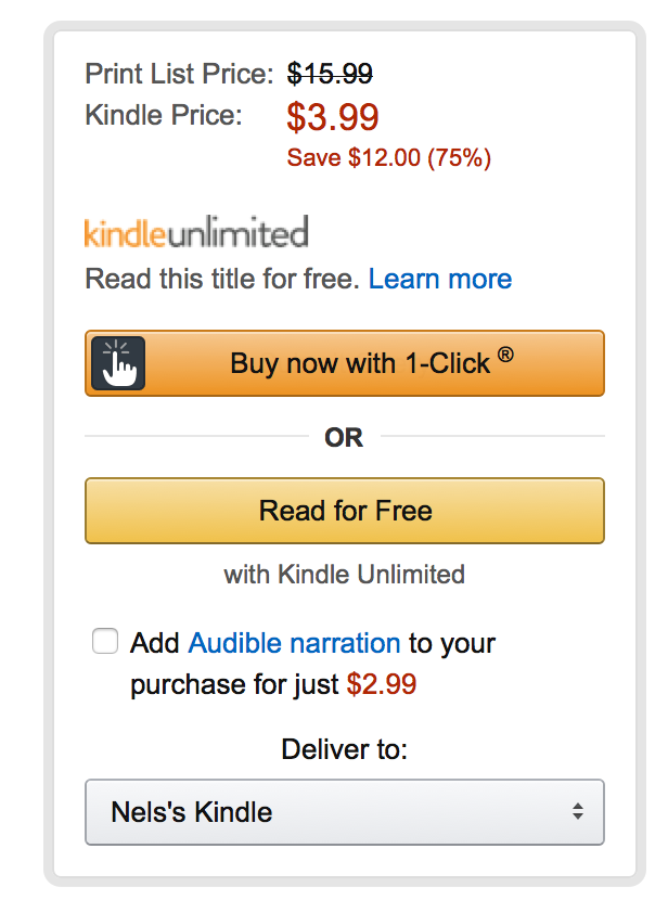 Once this rolls out to the general author population on Goodreads, Amazon will have provided authors with yet another fantastic marketing tool. And now is the part where you can chime in with your worries that by giving away only Kindle copies, authors and readers are locking themselves into Amazon’s platform. I am well aware that is exactly what Amazon is trying to get everyone to do. But it’s not any different from, as one of thousands of examples, Apple Music giving away 3 months free to try to get people to join that service, or Tidal music getting Kanye’s album exclusively for 2 weeks before everyone else to try to get people to join that service. I don’t want Amazon to gain a monopoly on ebook sales, for sure, but I also hope that people who worry that Amazon is going to begin acting like a monopolist and exploiting authors remember that without Amazon, there likely wouldn’t even be a market for ebooks big enough to sustain the careers of as many authors as now make a full-time living from their writing. (I’m certainly not one of them, nor do I ever think I will be, but I am happy that writers now have that option and can actually earn a comfortable living as a midlist author instead of living on ramen until striking gold and then eating only cavier)